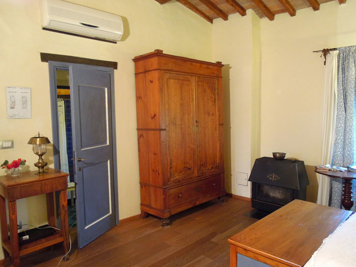 On the ground floor, comfortable room a little smaller than the rest, bathroom with shower, tall window facing East, ideal for brief stays.